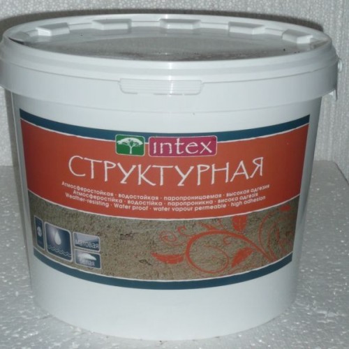 Акриловая краска "INTEX" Структурная предназначена для декоративной отделки поверхностей внутри и снаружи зданий, по бетонным, подготовленным кирпичным, оштукатуренным основаниям и в системах теплоизоляции фасадов, а также внутри помещений по основаниям из гипса, гипсокартона, древесностружечных и магнезитовых плит (после обработки их грунтовкой глубокого проникновения INTEX). Не рекомендуется применять для отделки цоколя.