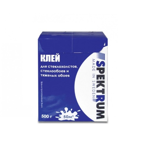 Клей для стеклохолста Спектрум 0.5кг - это сухой клей для поклейки стеклохолста, флизилина, стеклообоев и тяжелых обоев (велюровых, тканных) на любые поверхности в сухих помещениях. Производится клей на основании модифицированного крохмала с добавлением ПВА и специальных добавок. Клей разводят водой, он хорошо набухает без образования комков, и становится эластичной массой, удобной в применении. Клей Спектрум после высыхания прозрачный, не оставляет пятен и желтизны. Работает также как антисептик, препятствует развитию плесени и грибков. Применяется исключительно для внутренних работ.
