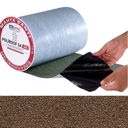 Poliroof SA MB - универсальный битумный материал, который применяется как конек, ендова (внутренние углы на скате), либо для устройства примыкания кровли к стене. Лента на полиэстеровой основе, с одной стороны является самоклеющимся материалом с другой – защищена цветной базальтововой посыпкой.