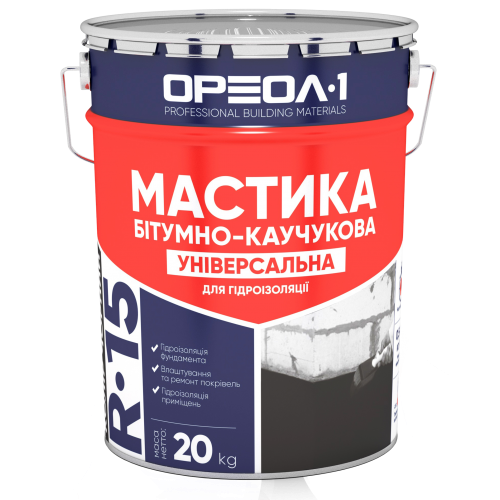 Мастика битумно-резиновая Ореол-1 готовая к применению смесь, состоящая из битума, модифицированного искусственным каучуком, минеральных наполнителей и органического растворителя. После высыхания образует высокопрочное покрытие, которое существенно увеличивает срок службы защищаемых конструкций. Мастика обладает антисептическими эффектом — предотвращает появление плесени, микроводорослей, мха и других микроорганизмов на металлических, бетонных, деревянных и других поверхностях.