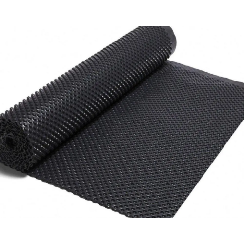 Мембрана полимерная, профилированная представляет собой плоский водонепроницаемый гибкий однослойный рулонный материал черного цвета из полиэтилена высокой плотности (HDPE), имеющий профилированную поверхность с отформованными выступами с одной стороны поверхности, и впадин с другой. Мембрана эффективно распределяет давление грунта по всей площади основания или фундамента зданий и сооружений. При этом исключается образование локальных (точечных) нагрузок. Применяется для защиты гидроизоляции от механических повреждений, защиты фундаментной плиты от капиллярной влаги, санации влажных стен, подготовки основания под фундаментную плиту и гидроизоляции отмостки. Шиповидную мембрану различают по показателю плотности. Свойства сырья, из которого он изготовлен, позволяют применять продукт в качестве надежной гидроизоляции самых разнообразных сооружений. Благодаря своей структуре материал способен выдерживать значительные нагрузки. Шиповидную мембрану плотностью 400 г/кв.м применяют для защиты гидроизоляции фундаментов глубиной до двух метров, а мембрана с геотекстилем используется в качестве дренажного слоя.