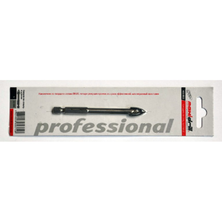 Как известно, работа с хрупкими материалами требует особой деликатности. Сверло Maxidrill эффективно справляется с такими задачами и обеспечивает продуктивность работ с минимальными рисками повреждения материалов. Сверло Maxidrill используется для работы со стеклом, керамической плиткой, керамогранитом и фарфором. Головка с четырьмя гранями ускоряет процесс сверления, а режущая кромка обладает высокой прочностью и монолитностью. Поверхность четко отполирована, на ней отсутствуют малейшие неровности. Остро заточенный наконечник гарантирует точное вхождение в основание. Диаметр сверла подбирается в зависимости от поставленных строительных задач. Шестигранный хвостовик плотно фиксируется в патроне электроинструмента.