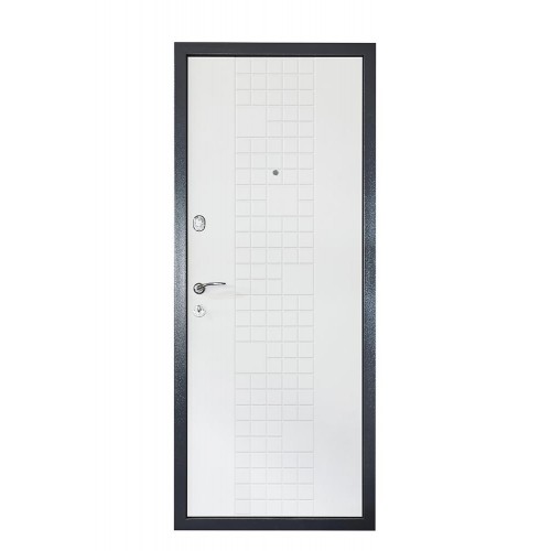 Утеплення короба дверей мінеральною ватою, що забезпечує гарну тепло- та шумоізоляцію. Ручка Barrera H-R-08 SN/CR відрізняється ергономічністю та зовнішньою привабливістю, завдяки своїй квадратній основі. Має двоконтурне ущільнення. Застосовується ущільнювач Schlegel "Шлегель" у два контури, який характеризується своєю чудовою німецькою якістю. Сучасний дизайн. Зовнішнє та внутрішнє оздоблення - це плівка ПВХ у кольорі антрацит і біла крокрень з абстракційним малюнком, зовні плівка - антрацит, усередині плівка - біла крокрень.