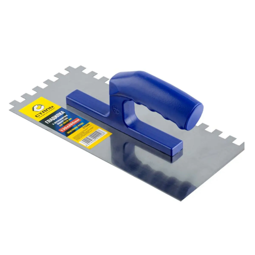Полотно гладке та рівне, виготовлене зі спеціальної неіржавкої сталі, обладнане плоскими широкими зубцями 10х10 мм. Ці зубці дають змогу під час розрівнювання створювати борозенки та канавки, які надалі покращують адгезію нанесеного шару з подальшим матеріалом.