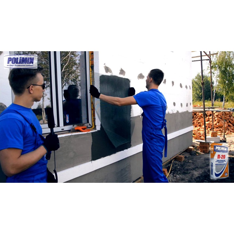 Завдяки якісним полімерним добавкам клей Полімін П-20 має високу адгезію і пластичність. Температура експлуатації клею від -30 до + 70ºС, що дозволяє застосовувати клей Полімін П20 в нашій країні зовні приміщень. В процесі експлуатації клей "дихає", є паропроникним, сприяє виведенню зайвої вологи і перешкоджає її скупченню в утеплювачі. Клей П-20 має в складі армуюче мікроволокно, завдяки цьому його рекомендовано використовувати для створення армуючого шару по плитах утеплювача з пінополістиролу і мінеральної вати.