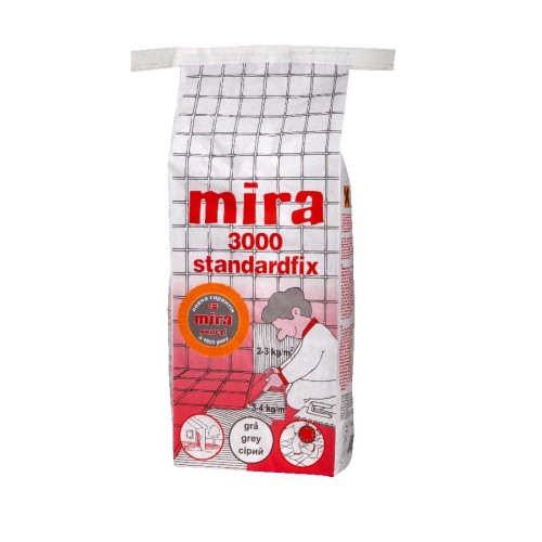 Клей для плитки Mira 3000 standardfix на цементній основі для укладання плитки зовні і всередині приміщень на підлогу і стіни. Високий ступінь адгезії.