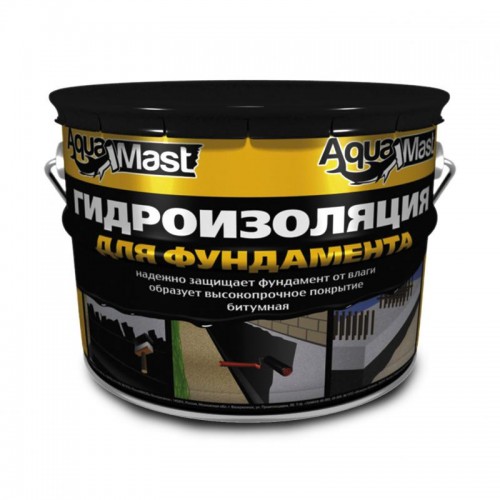 Мастика повністю готова до застосування, призначена бітумна мастика для обмазувальної гідроізоляції бетонних, залізобетонних, металевих, дерев'яних конструкцій, поглиблених в землю і контактують з вологим середовищем: фундаментів, паль і т.п. AquaMast Мастика бітумна утворює міцне і довговічне покриття, надійно захищає від вологи елементи конструкцій.