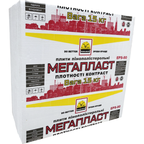 Пінопласт BUILDER МЕГАПЛАСТ володіє прекрасними тепло і звукоізоляційними властивостями. З огляду на особливу міцность і стійкість до механічних навантажень, його можна застосовувати для ізоляції стін, підлог, стель, практично будь-яких конструкцій, які використовуються в будівництві. Для укладання матеріалу не потрібно специфічних інструментів або обладнання. Досить клею і дюбелів. Щільна структура пінопласту дозволяє використовувати його для облаштування підлог, в т.ч. і підлог з підігрівом.