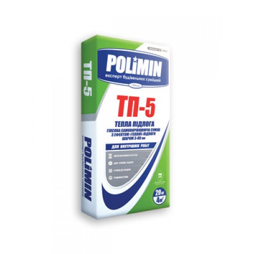 Суміш Полімін ТП-5 застосовується для влаштування вирівнюючого прошарку на мінеральних поверхнях під фінішні покриття (лінолеум, паркет, ламінат, керамічна плитка та ін.) Всередині приміщень з сухим режимом експлуатації, шаром не менше 3 мм. Може застосовуватися при влаштуванні теплої підлоги для заливки обігрівальних елементів. При влаштуванні плаваючих стяжок в складі систем теплозвукоізоляції товщина шару повинна бути не менше 40 мм. Придатна для машинного нанесення.