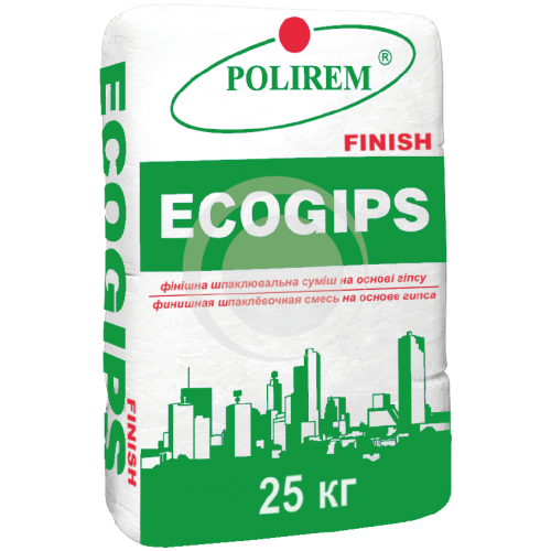 Опис POLIREM Ecogips finish 25кг Шпаклівка на основі гіпсу (безпіщанка) для ремонтних робіт і фінішної обробки стін і стель в сухих приміщеннях. Дозволяє отримати дуже гладку поверхню. Вагу нетто: 25 кг Кількість на палеті: 48 мішків