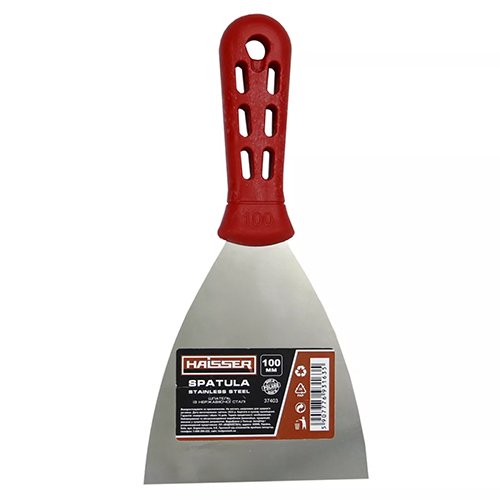 Шпатель Haisser - найпоширеніший інструмент, який застосовується для виконання багатьох видів ремонтних робіт. Завдяки йому можна виконувати безліч робіт з цементом і будівельними сумішами, так само шпаклівку, закладання щілин, тріщин, видалення старих шпалер і побілки, укладання плитки і т.д. Сталеве нержавіюче полотно, пластикова ручка з отвором для підвішування.
