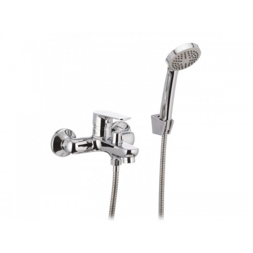 Змішувач комплектується душовим гарнітуром: однорежимною, круглою ручною лійкою, настінним тримачем для ручної лійки і душовим шлангом довжиною 150 см.