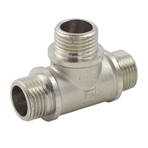 Fado Трійник нікель – це латунний фітинг для трубопроводів, який використовується для розгалуження потоку води (або іншої рідини) в трьох напрямках, має три різьбових отвори захисне нікельоване покриття для стійкості до корозії та естетичного вигляду, та виробляється італійською компанією Fado