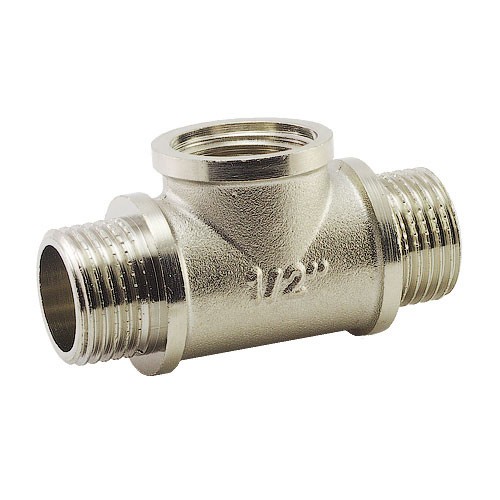 Fado Трійник нікель – це латунний фітинг для трубопроводів, який використовується для розгалуження потоку води (або іншої рідини) в трьох напрямках, має три різьбових отвори захисне нікельоване покриття для стійкості до корозії та естетичного вигляду, та виробляється італійською компанією Fado