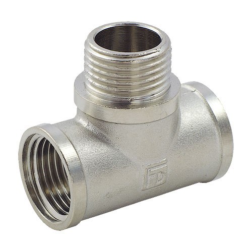 Fado Трійник нікель – це латунний фітинг для трубопроводів, який використовується для розгалуження потоку води (або іншої рідини) в трьох напрямках, має три різьбових отвори захисне нікельоване покриття для стійкості до корозії та естетичного вигляду, та виробляється італійською компанією Fado
