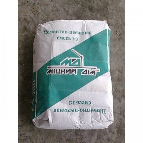 Цементно-піщана СУМІШ (ЦПС) - має широкий спектр застосування в будівельних і ремонтних роботах. Торгова марка Міцний Дім пропонує цементно-піщану суміш у співвідношенні 1-3 (1 частина цементу з додаванням пластифікатора і 3 частини піску), фасовану в мішок 20кг. Цементно-піщана СУМІШ Міцний Дім є універсальною, досить проста в застосуванні і не вимагає великих зусиль для приготування. Приготування розчину: Cухую суміш залити водою кімнатної температури. Ретельно перемішати до однорідного стану, витримати 5 хв. і перемішати ще раз. Пропорція води коректується залежно від властивостей розчину матеріалу, сфери застосування і атмосферних умов. Отриманий розчин необхідно використати протягом 90 хв. РЕКОМЕНДАЦІЇ Час застигання розчину залежить від основи, температури навколишнього середовища і відносної вологості повітря і складає як мінімум 24 години. Роботи необхідно виконувати відповідно до СНиП 3.04.01-87 і ДБН В 2.6-22-2001 при температурі повітря від 5 ° до 30 ° С. Найбільш ефективний результат досягається при температурі + 20 ° С і відносній вологості 60%. УВАГА! (ЦПС) містить цемент, що викликає лужну реакцію в момент гідратації, тому при роботі необхідно берегти очі і шкіру. При попаданні розчинної суміші в очі, негайно промити їх водою. ЗБЕРІГАННЯ цементно-піщана СУМІШ Міцний Дім необхідно зберігати у фірмовому герметичному упакуванні в сухих приміщеннях, на піддонах. Термін зберігання 12 місяців. Пошкоджені мішки використати в першу чергу. Технічні характеристики Марка розчину за міцністю на стиск - М150 Зернистість (пісок), мм, не більше - 2,5 Рухливість, см, не менше - 4 Водоудерживающая здатність,%, не менше - 95 Міцність зчеплення з основою (повітряно-сухі умови ), МПа, не менше - 0,2 Морозостійкість, циклів - 75