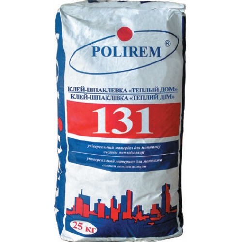 Опис POLIREM 131W Універсальний клей для систем теплоізоляції, 25кг КЛЕЙ-Шпаклівка «ТЕПЛИЙ ДІМ» (для монтажу систем теплоізоляції) Застосування: -Для приклеювання теплоізоляційних плит на основу з бетону, легкого бетону і цегляну кладку; -для приклеювання армуючої сітки; -для нанесення шпаклювального вирівнюючого шару під облицювальний декоративний матеріал. Витрата сухої суміші на 1мм укладеного шару: 1,3-1.4 кг / м² Властивості: ВІДМІННА АДГЕЗІЯ ПЛАСТИЧНА, легко наноситься на поверхню МАЄ гідрозахисні ВЛАСТИВОСТІ морозостійкість ЗРУЧНА В ЗАСТОСУВАННІ ЕКОЛОГІЧНО ЧИСТА Упаковка: мішок 25 кг Кількість на палеті: 48 мішків