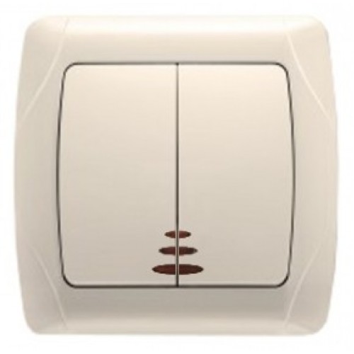Вимикач 2-клавішний кремовий з підсвічуванням Viko KARMEN